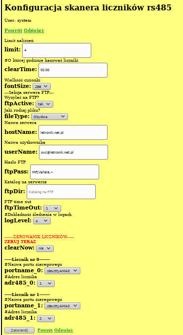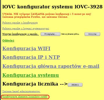 Następnie w głównym menu klikamy: [Konfiguracja skanera liczników rs485].